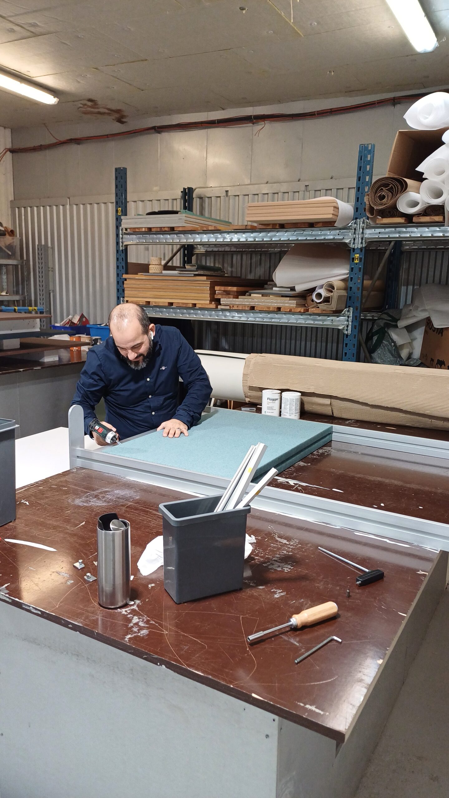 Hogias behov handlade om att uppdatera textilen på befintliga golvskärmar för att skapa ett enhetligt och samtida uttryck i kontorsmiljön. Vår projektledare och tapetserare arbetade noggrant med tygval, detaljer och utförande för att säkerställa både hög kvalitet och lång livslängd. Hela processen genomfördes cirkulärt: vi hämtade skärmarna på plats hos Hogia med miljömärkt fordon, tog dem till vår verkstad för omklädning, och återcirkulerade dem därefter tillbaka till verksamheten i ny, uppdaterad form.