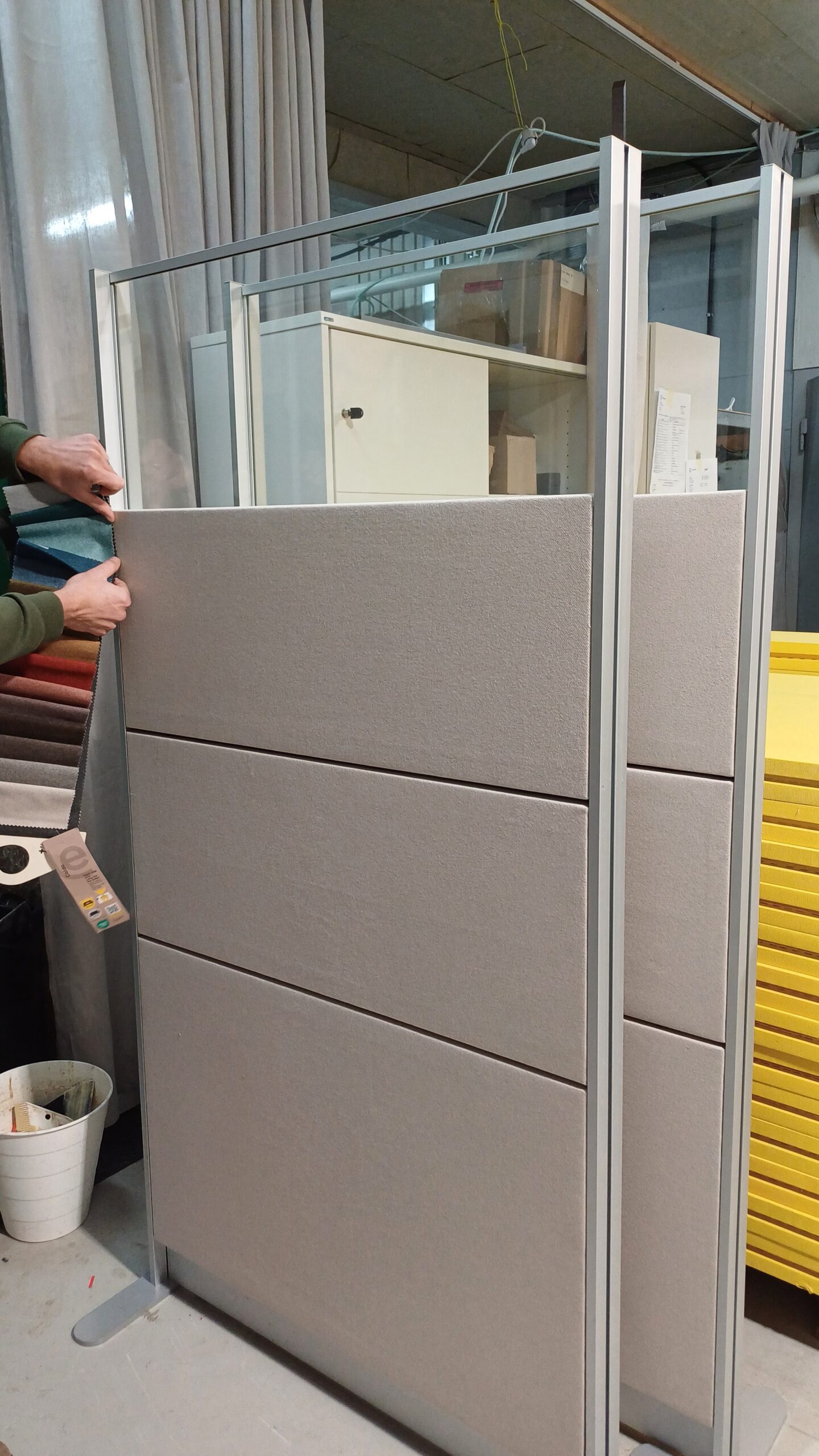 Omklädning av golvskärmar för Hogia i Stenungsund - Möbelrekond