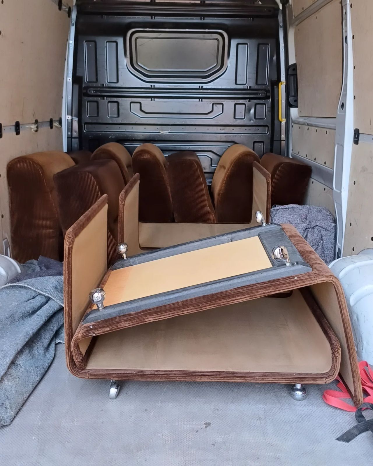 Soffan kläddes i ett tyg från Kvadrat, kundens eget val, som fångar den autentiska manchesterkänslan och ger möbeln både taktil kvalitet och tidlös elegans. Vårt team arbetade omsorgsfullt för att bevara de detaljer som ger möbeln dess 70-talsidentitet, samtidigt som konstruktion och ytskikt uppdaterades för att hålla många år till.