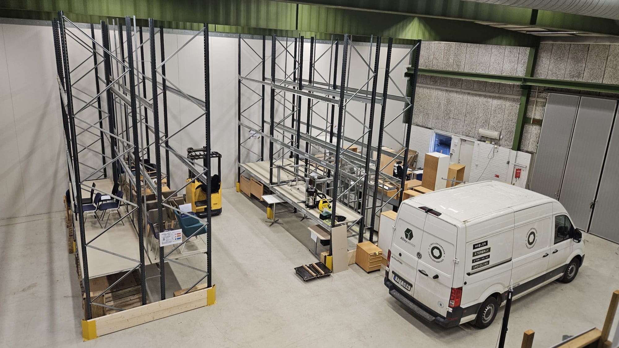 Utifrån denna analys samordnade vi uppbyggnaden av det fysiska lagret och tog fram rutiner som stöttar det cirkulära flödet. I den modellen kontaktar verksamheterna en ansvarig funktion som organiserar upphämtning och registrering av möbler i det digitala biblioteket. Under projektets gång blev det tydligt att en särskild möbelsamordnare behövs för att hålla ihop detta arbete på ett hållbart och effektivt sätt. Vi rekommenderade kommunen att inrätta en sådan roll, och efter projektets avslut valde Lerum att rekrytera en möbelsamordnare som i dag ansvarar för att driva arbetet vidare och säkerställa att återbrukshubben tillsammans med Sajkla fungerar som nav i flödet.