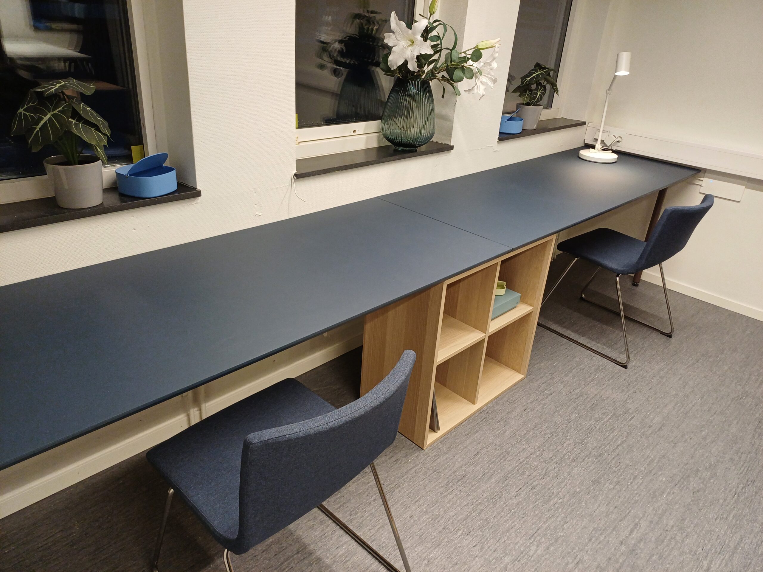 I projektet för Nordic SeaFarm byggde vi platsbyggda lösningar med linoleum, skapade inredning av restmaterial och gav nytt liv åt befintliga möbler i stället för att köpa nytt. Genom att kombinera återbruk med formstark design skapade vi en sammanhållen arbetsmiljö som speglar Nordic SeaFarms identitet som hållbar innovatör. Att återbruka möbler istället för att köpa nytt innebär en betydande minskning av CO₂-utsläpp och materialförbrukning. Resultatet blev ett modernt kontor där resurser tas tillvara och där helheten stärks av genomtänkta cirkulära val – ett inspirerande exempel på hur återbruk kan lyfta både uttryck och funktion i professionella miljöer.