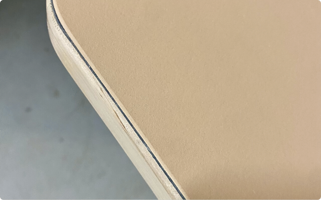 Leverans, montering och möblering av rekonditionerade konferensbord med bordsskiva i @forboflooringse möbellinoleum Clay och omlackerat underrede i RAL9001 ♻️